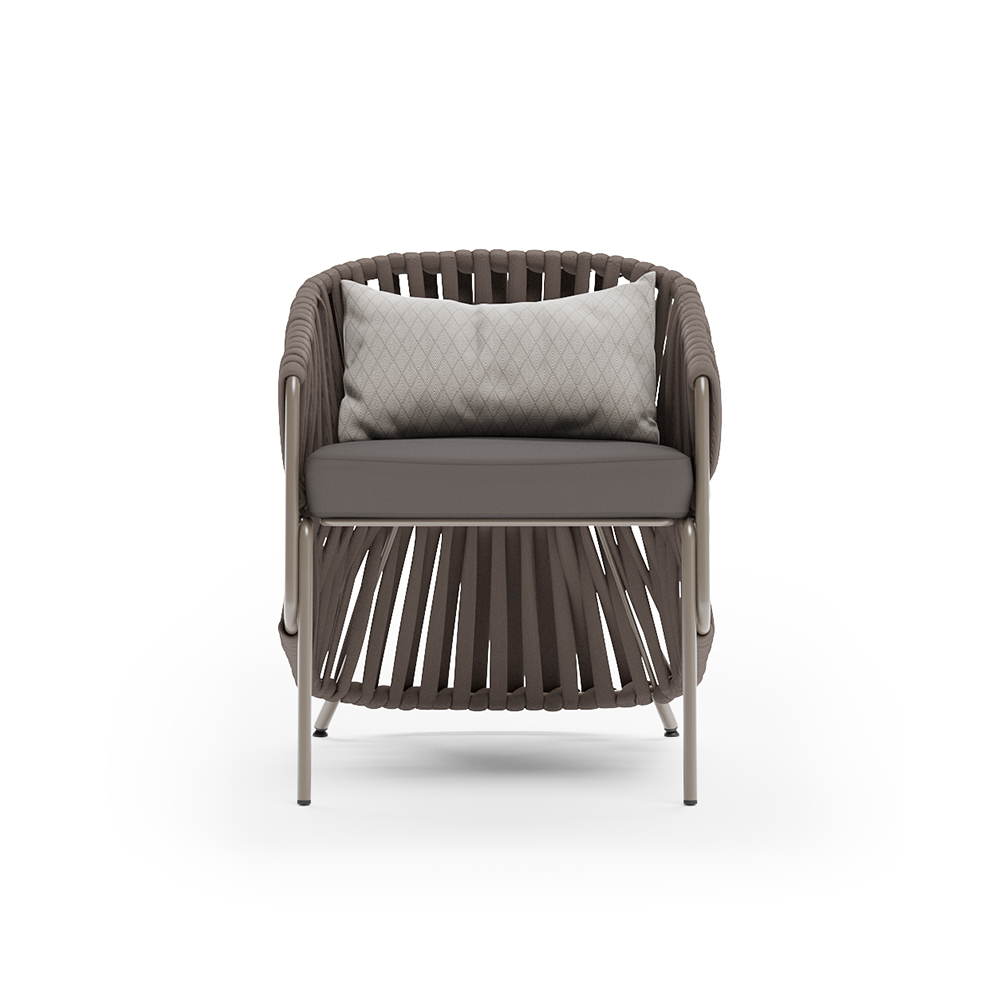 Для создания кресла используется каркас из нержавеющей стали, плетение из полиэфирной ленты с мягким латексным сердечником и водоотталкивающие ткани.
